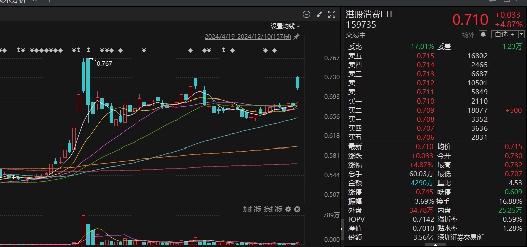 网贷炒股平台 中央政治局会议:明年要大力提振消费,港股消费ETF(159735)涨近5%,雅迪控股涨近6%